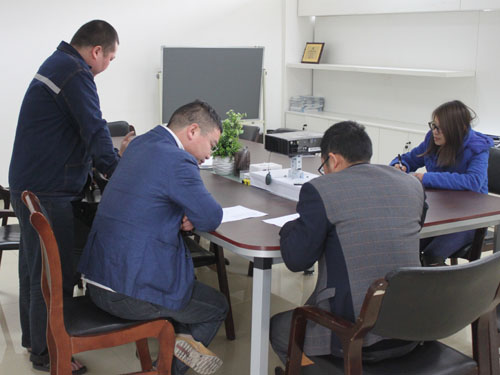 2015年4月9日,浙江杭州客戶需要定制一臺(tái)發(fā)酵罐,來我公司與銷售經(jīng)理和技術(shù)工程師進(jìn)行具體細(xì)節(jié)的洽談。
